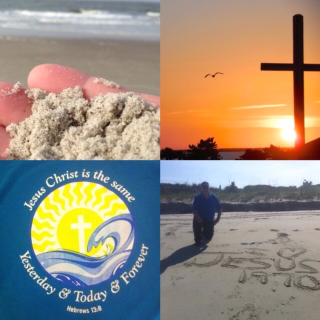 I want to share with you a message in the sand, that changed my life…Every grain of sand represents how much God cares for you and me… “How precious are Your thoughts to me, O God! How great is the sum of them! If I should count them, they would be more in the number than the sand” (Psalm 139:17-18). Think about that, grains of sand…that’s more than we could ever count. We sometimes need to be reminded of that, especially when our feelings tell us otherwise. In spite our failures, He loves us enough to not only to forgive us but to energize us to be the very best we can be for Him in our daily lives. I knew a lot of information about God but didn’t know Him personally. Then, all of that changed in the summer of 1970 . We had a new Pastor at our church, Dr. Ian Walker, and he spoke about having a personal relationship with God, not just about a religion about God. . I attended a youth camp with our church youth group on the coast of North Carolina. One afternoon, I went by myself for a walk on the beach .I prayed and asked Jesus to become my personal Lord and Savior. I have never regretted that decision I made that day. Through the years, I have been back to that same camp to lead retreats and attend meetings. I always take time to go out on that same beach, just talk to Jesus in prayer and thank Him. I still feel unworthy of His love, grace, and forgiveness …yet I know from His Word it is true. I am still learning more about how much He loves and cares for us.He is my best friend, best counselor, best encourager, I can’t imagine living life without Him. He makes me a better person, spouse, parent and friend for others. He is my motivation, and source of strength each day. Thank you Jesus for loving me and caring for me! Also, since that day, I am so thankful that I have had the opportunity to tell others about His love and care for them too. Just this past week, I had the honor of introducing Him to a friend of mine who is over 90 years old.