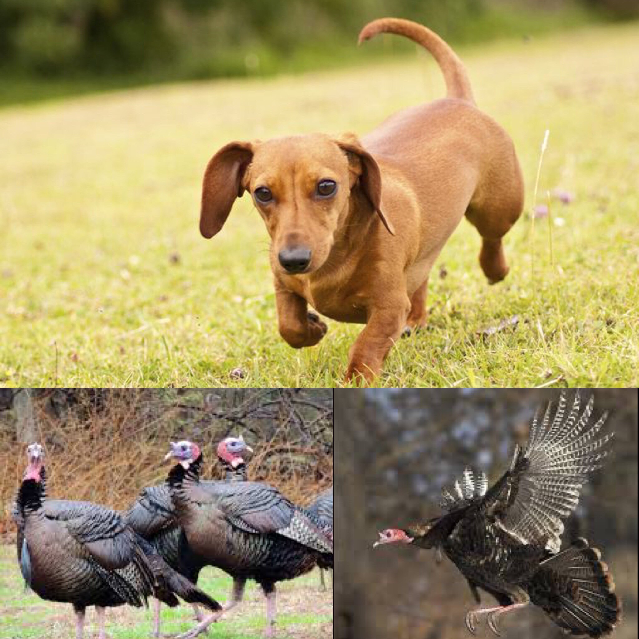 Upon this occasion, as we went down the trail… we encounter about a dozen turkeys. She was shocked and startled and didn’t know what to do. Then she ran toward them barking ferociously ( I guess this was a valiant effort to protect me ) . She got within about 30 yards of them and then they spread open their feathers. This action made them look much larger. Surprised and terrified, she imediately turned around and ran as fast as she could right back to me, then she got behind me in a safer location and stated barking again. The turkeys began to flap their wings and ran towards us, I stood still with my little dog, was now shaking like leaf in a windstorm. Just before they reached us, they slowly gained enough speed to barley lift up into the air like a big airplane taking off… and then flew right over us. She looked up at them in puzzled disbelief, turning her head back and forth at them and then at me, as if to see if I thought everything was okay. I nodded my head and petted her a little bit. She was good to go from that point on and went prancing down the trail and wagging her tail as if we had just conquered the universe. My dog overcame a lot of fear that day…especially with me being there, which gave her the confidence to face and overcome her fear.