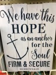 The early Christians used the symbol of an anchor with a cross on of it. It was to give them Hope and remind them of their confidence and faith in God. You may seen this same symbol in a stained glass window in a church. It is taken from Hebrews 6:19… “We have this Hope as an anchor for the soul, firm and secure.” Even today, beneath the surface of our lives, we also have this anchor of Hope and trust in God. This anchor holds us through the storms of life. Hope is not just wishful thinking, it is having confidence in God, regardless of the situation.